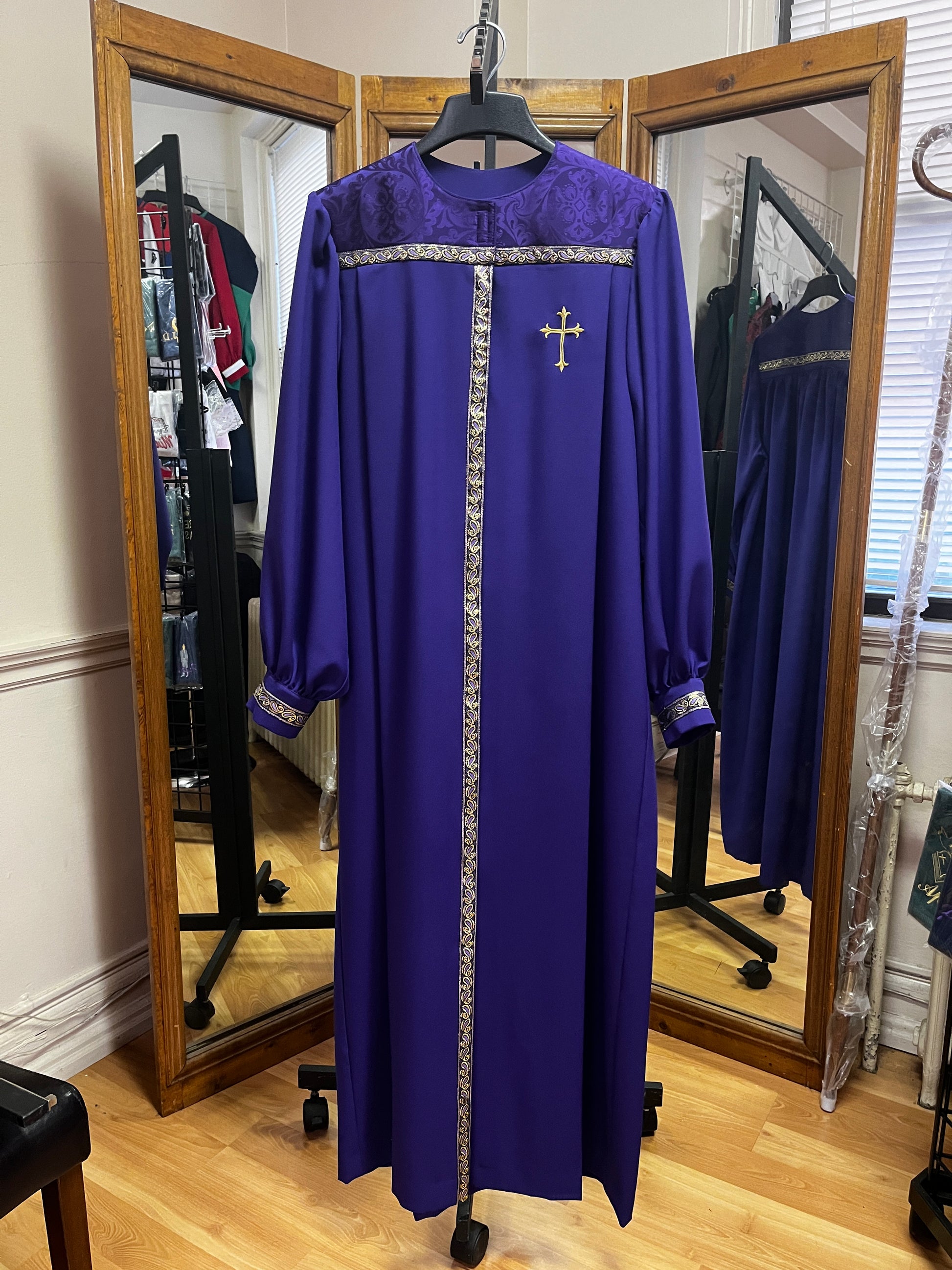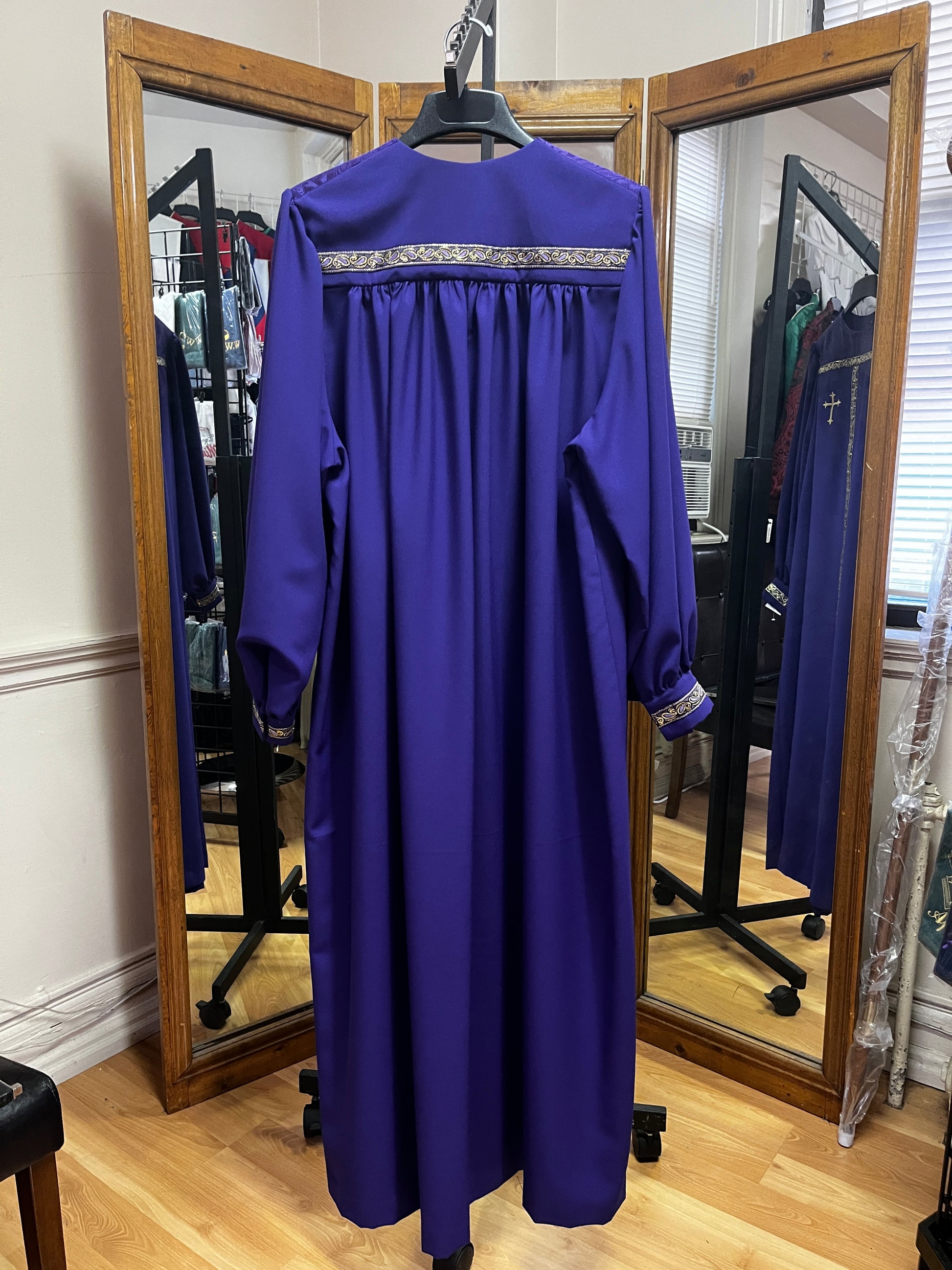 SALE! Purple poplin with gold trim.